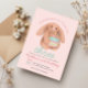 Girls Whimsical Cute Pink Bunny and Cake Birthday Invitation