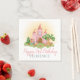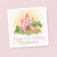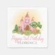 This cute and whimsical fairytale-themed kids birthday napkin design features a modern prince and princess, with an enchanted pink castle, butterfly’s, flowers, hares, a magical deer, and whimsical mushrooms. This “once upon a time” design can be easily personalized with your girls name and age. The perfect enchanted addition to your child's birthday party.