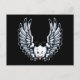 Cute cartoon skull with black bow and big wings. T-shirts, sweats, cards, gifts.