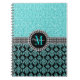 Girly Aqua Blue Glitter Monogram Damask Name Notebook