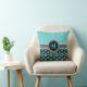 Girly Aqua Blue Glitter Monogram Damask Name Throw Pillow