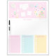 Artist themed dry erase message board with cute, girly colours and charming illustrations designed especially for artists, art students and hobbyists. Featuring original artwork of an artist’s desk with paints, paint palette, mini canvases, brushes, paint water and a jar of daisies for decoration. Includes space for notes and reminders plus three checklist sections for listing and ticking off work in progress, completed projects and a shoppin* list for materials needed. The perfect gift for those who love to make art!
