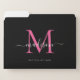 Elegant Modern Black Blush Hot Pink Monogram Initial Script Name File Folder