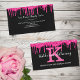 Girly Black Hot Pink Glitter Drips Chic Monogram Business Card