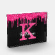 Girly Black Hot Pink Glitter Drips Monogram Name Photo Block