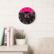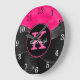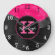 Girly Black Hot Pink Gray Waves Glam Monogram Name Large Clock