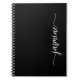 Modern, Simple, Black Monogram Name Feminine Signature Script Spiral Notebook. This minimalist plain color design featuring your first name in a pretty hand lettered swash tail font typography white script on black color background. Easy to personalize them. Great custom personalized girly gift for Birthday Party, Wedding, SWEET 16 Birthday party, Bridal shower, BABY shower and for anyone who loves pretty minimalist style.