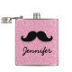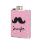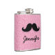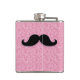 GIRLY BLACK MUSTACHE PINK GLITTER PRINTED HIP FLASK