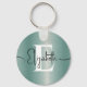 Girly Blue Brushed Metal Monogram and Script Name Keychain