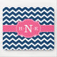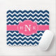 Girly Blue Chevron Pink Monogram Mouse Pad