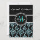 Girly Blue Glitter Black Damask Personalized Party Invitation