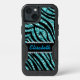 GIRLY BLUE ZEBRA glitter printed Diamonds monogram Otterbox iPhone Case