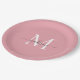Girly Blush Pink Gray Monogram Elegant Script Name Paper Plates