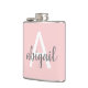 Classy Chic Blush Pink Rose Gray (Grey) Monogram Flask. This Flask can be customized to include your initial and first name. The Blush Pink Rose Flask is perfect for a birthday, bridal gift, or bachelorette party celebration.