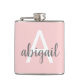 Girly Blush Pink Gray Monogram Vinyl Wrapped Flask