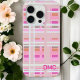 Girly feminine tredy pretty iPhone case in geometric pattern,like buffalo plaid,tartan,checkered design theme.Modern color scheme with blush pink,magenta,pink,white,orange.Personalizable customizable with monogram initial letter if you wish,if not you can delete the text.Fashionable accessory for you or a creative unique thoughtful gift for her.