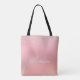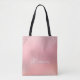 This modern tote bag features a blush pink rose gold faux silver glitter sparkle design. Personalize it with a name.