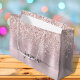 Girly Glam Blush Rose Gold Glitter Metallic Monogram Name Signature Script Custom Personalized Gift Bag. This design featuring your first name in a pretty hand lettered style swash tail font signature typography (or calligraphy) on blush pink rose gold faux metallic foil with glam sparkle glitter border. These are easy to customize it. This feminine gift bag great for housewarming gift, also for birthday, mother’s day, wedding, sweet 16 birthday party, bridal shower, baby shower, for graduation party gift and It’s for the girl who loves unique sparkle stylish things.