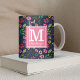 Girly Bohemian Flowers Navy Blue | Pink Monogram Coffee Mug