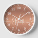 Girly Brushed Copper Metal White Monogram Name Clock