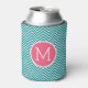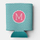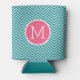 Girly Chevron Pattern with Monogram - Pink Teal Can Cooler