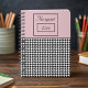 Classic black and white houndstooth pattern, solid vintage pink background with framed name and year, are featured on this trendy spiral notebook. Change the name and year to make it yours using the simple Template provided. An awesome gift for family or friends. Small and lightweight to dtop in the mail. Contains 80 pages, college lined in black and measures 6.5" x 8.75". The size makes it convenient to carry around in a bag, purse, or tote. See "About This Product" for more information.