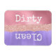 Colorful girly dishwasher magnet done graphics of a pink foil and purple foil looks with pink faux glitter between them. Big white text reads Dirty and Clean.