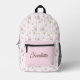 Girly Cute Coquette Goose with Pink Bow Monogram Printed Backpack