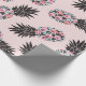 Girly Cute Floral Pink Black Pineapple Pattern Wrapping Paper