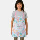Cute and girly kid's apron. Featuring pastel pink water-themed illustrations, including a rubber duck, wellies, rainbow, bubbles, watering can, and flowers, with space to add your girl's name and initial. The perfect modern and whimsical gift for any budding chef or artist.