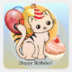 Cute kitty festive birthday stickers featuring a kitten with balloons and a cupcake.