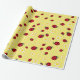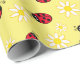 girly cute ladybug and daisy flower pattern yellow wrapping paper