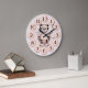 A lovely wall clock for a girls room or nursery featuring a cute big cat tiger image in girly pink