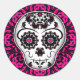 My version of a super cute sugar skull in white, hot pink, and black with lots of elegant accents on a coordinating background. Shown here on stickers.