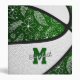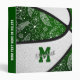 This cute basketball themed 3 ring binder features the realistic image of an abstractly oversized basketball that has recolored alternating green and white panels with delicate hand-drawn doodle flowers, feathers and paislies patterned on the basketball's green panels mirrored on the front & back cover - customize with the athlete's name and monogram, varsity letter, or jersey number - by katz_d_zynes