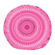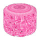 This soft modern seat is covered with girly digital art that resembles duo-tone fuchsia decorative tiles The sides are covered with small square tiles. The top and bottom are covered with a circular tile pattern.