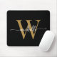 Girly Elegant Black Gold Monogram Name Script Mouse Pad