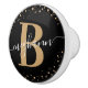 Girly Elegant Black Gold Name Monogram Script Ceramic Knob