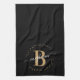 Girly Elegant Black Gold Name Monogram Script Kitchen Towel