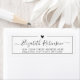 Elegant, Modern Girly Hand Lettered Script Black and White Return Address Labels. Featuring a pretty hand-lettered swash tail font script name template, little heart shape on the top, around thin line frame on white color background. Easy to personalize them with your names and return address info.