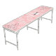 Not that I've had experience to buy that many beer pong or ping pong tables in my life, but I know a good quality product when I see it! This beer pong table is sturdy and solid and still lightweight enough to be portable. It folds and unfolds smoothly for easy storage or setup. From order to arrival here, the time was half of what was estimated, and that was during the holiday season. And -- most importantly -- the recipient LOVED it! I would definitely purchase this product again or other products by the maker Hampton Technologies , should an occasion to do so arise. The printing is beautiful! The blues and reds are deep and rich and the white "chalk look" is clean and crisp,. The photo (taken in low light) doesn't really do it justice. We know it's printed, but take a step back, and it really does look like chalk on a blackboard. To get the blue background like we did (instead of the traditional green chalkboard background), use background color #26306A. :)