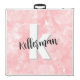 A soft blush pink watercolor backdrop provides the canvas for a cute and contemporary monogram beer pong table for the beirut drinkng game, featuring initials and name. You can remove the circles if you just want a cute table! The monogram's black and white color palette, composed of clean modern fonts mixed with a script font, exudes a simple yet fun charm. Whether you want to use your first name or last is up to you on how you want to rock this in your space! You may find that your initial may sit lower or higher than it should once you change the letters. If you go into the edit tool, you can easily move these around. Girly Pink Watercolor Marble Name Initial Monogram Beer Pong Table.