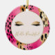 Girly Eyelashes Pink Glam Gold Sparkle Leopard Ceramic Ornament