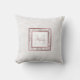 This elegant pillow features a faux white leather texture and a customizable name and monogram on a faux marble and metallic rose gold frame.
