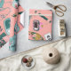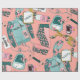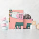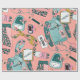 Whimsy watercolor floral fitness themed pattern wrapping paper in accents of teal, gold and pink.