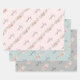 A fun, girly festive trio of wrapping sheets. All sheets have some gift-giving fun with 'No peeking' typography. The sheets have background colors of Christmas pink, sage, green and silver grey. Girly Floral No Peeking Festive Wrapping Paper Sheets.