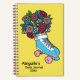 This design features a beautiful illustration of a roller skate, overflowing with flowers. The flowers include aster, forget-me-not and lily of the valley. You can add your own name, title and year on the front cover. On the back is a pattern of forget-me-nots with picked petals. The background color can be changed in the Zazzle editor screen.