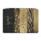 Girly modern animal print iPad case - both zebra and leopard - in brush strokes with gold, glitter, black and adorned with your script monogram, first name and initial.
