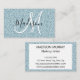 This chic, girly and glam business card has a light blue silver glitter sparkles background on both sides. On the front of the business card is your first name in an elegant black script with a large monogram initial in white behind it. Then on the back is your name, job title and contact details with a white background. Easily personalize this business card. Click "customize further" to change the text color and font style and size. This business card is perfect for a makeup artist, hairstylist, beauty consultant, events planner or salon owner.