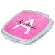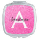 Girly Glam Hot Pink Glitter Sparkles Monogram Name Compact Mirror